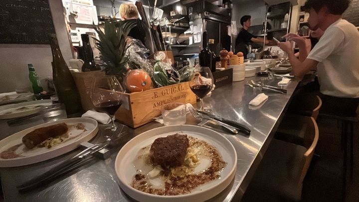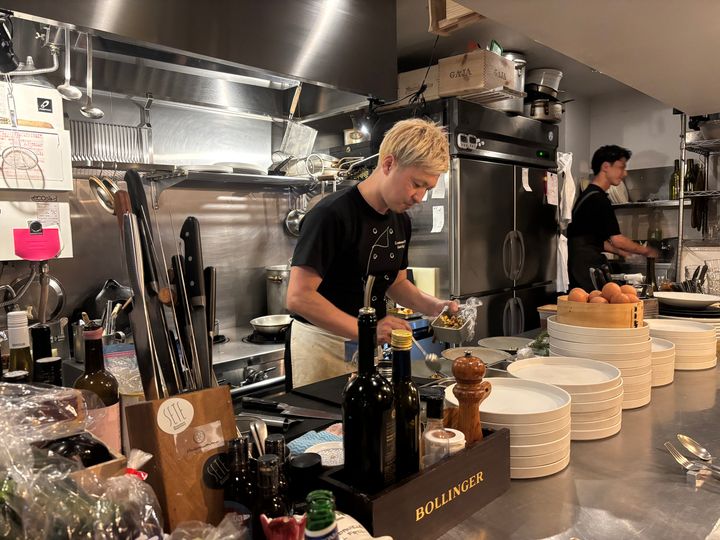 カウンター中心の開放的な空間となっており、フルオープンキッチンとスタンディング席もあるため、ひとり飲みや気軽な会話が楽しめます。気さくな店員さんと話しながら美味しい料理を堪能することができ、好みや要望を伝えるとそれにぴったりのワインも出してくれます。