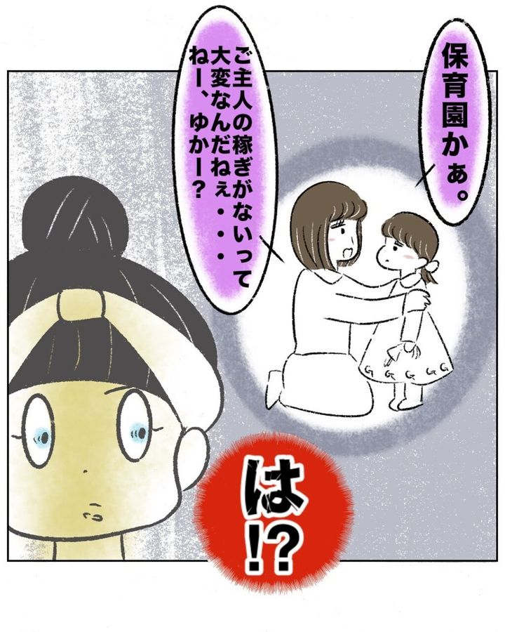 保育園希望というだけでなぜ「ご主人の稼ぎがない」と判断するのでしょうか・・。こんな失礼なことを口にできてしまうゆかちゃんママが恐ろしいです。