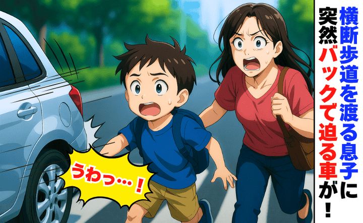 「止まって!」横断歩道を渡る息子めがけて車がバックで突っ込んできた!?恐怖の瞬間、私はとっさに