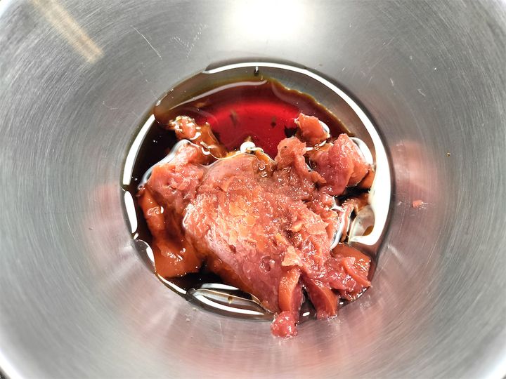 1. ボウルに梅干し、しょうゆ、煮切り酒、太白胡麻油を入れて混ぜます。