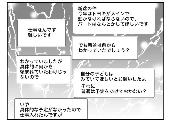 この前の新盆のお話です。私(ユリコ、30代)は1歳の息子(カイ)の母で、第2子を妊娠中。私の実家は地元に代々続く家で、長女である私が実家を継いで親と同居しています。夫(アツシ、30代)は婿入りしました。今年は祖父の新盆で、臨月の私に代わって、隣県に住む弟(トヨキ、30代)が主催する予定です。しかし義妹(ナミ、40代)が子どもたち(小1と年長の息子)を弟に丸投げすると知り、私は義妹への怒りがおさまりません。いつも他人ごとの義妹に、どうしたらちゃんと状況を把握してもらえるのか悩みます。