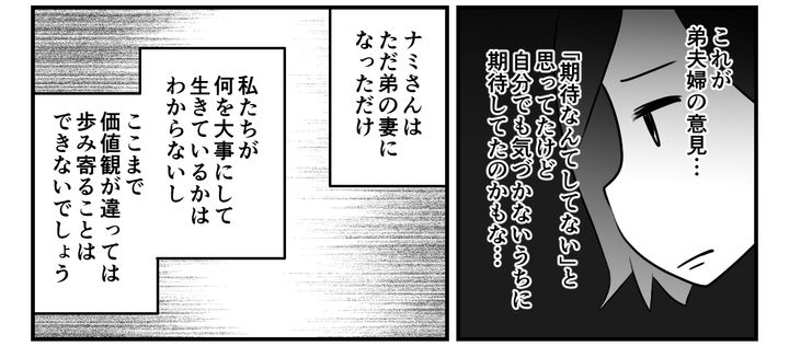 弟と同じ内容を言われ、それが弟夫婦の意見だと思うと……なんだかいろいろなことがバカバカしくなりました。私が何を大事にして生きているかはわからないだろうし、ここまで価値観が違っては歩み寄ることはできないでしょう。