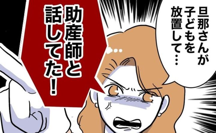 まいさんのママ友が一部始終を目撃しており、カズさんが助産師と話し込んでいたと指摘。