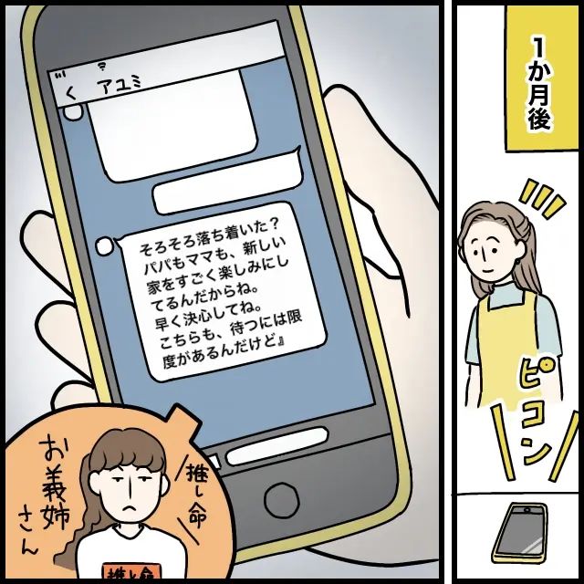「新しい家を早く決心してね」義姉から脅しのメッセージが