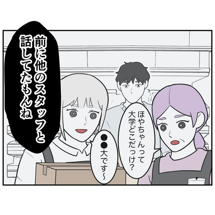 周囲のバイト仲間やパートの先輩女性陣はほや助さんを守ろうとしてくれますが、「人に迷惑をかけてはいけない、自分が我慢すれば」とほや助さんは1人、恐怖を抱え込むのですが…。