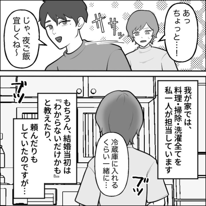 主人公は結婚して2年目。共働き夫婦なのですが、家事を一切しない夫。そのせいで我が家には特殊なルールが設けられているのです。
