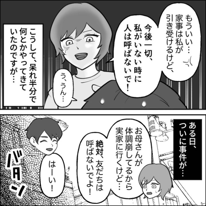 「片付けて」→「やり方わからない無理」家事を一切しない夫。掃除をしないので、私が留守中の来客を禁止!ある日ルールを破った夫→帰宅した私が見た最悪の光景・・・