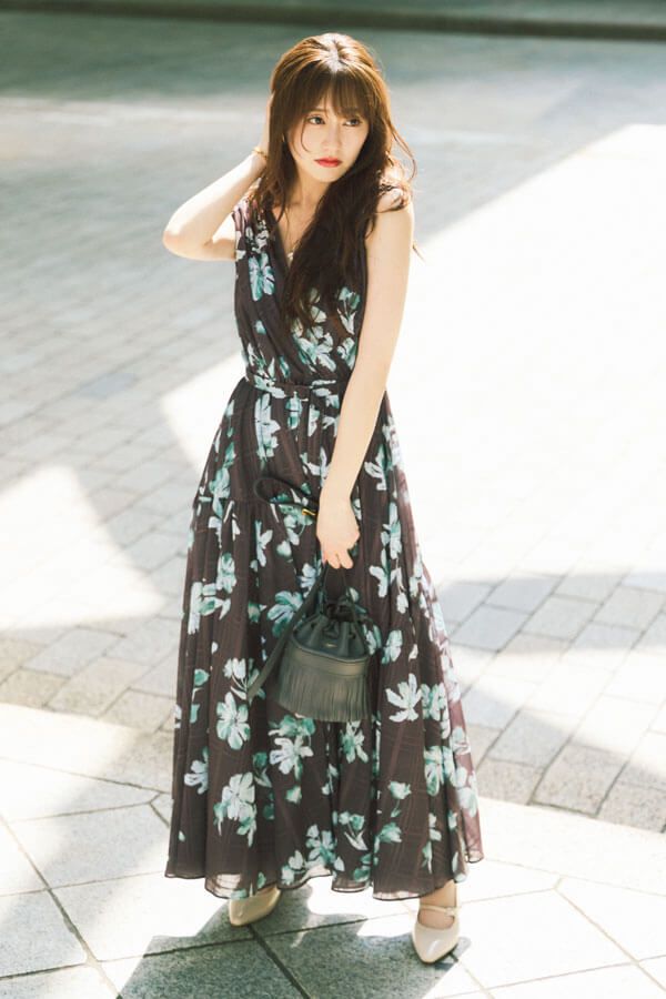 ワンピース¥26,950/FRAY I.D ピアス¥38,280/フェルセラ(ズットホリック) ネックレス¥8,580/ルーニィ ブレスレット¥15,400/イットアトリエ(14 SHOWROOM) バッグ¥126,500/J&M デヴィッドソン(J&M デヴィッドソンカスタマーセンター) パンプス¥23,100/卑弥呼