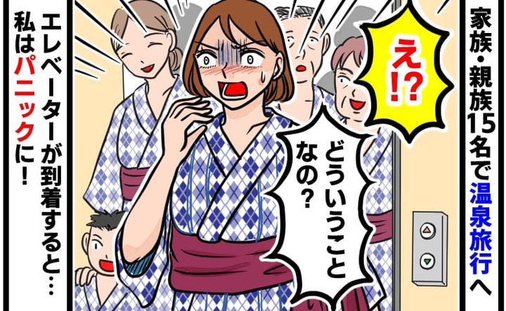 「え?どういうこと!?」家族、親戚で温泉旅行へ。旅館のエレベーターが到着すると…ある事実に気づいてパニックに!