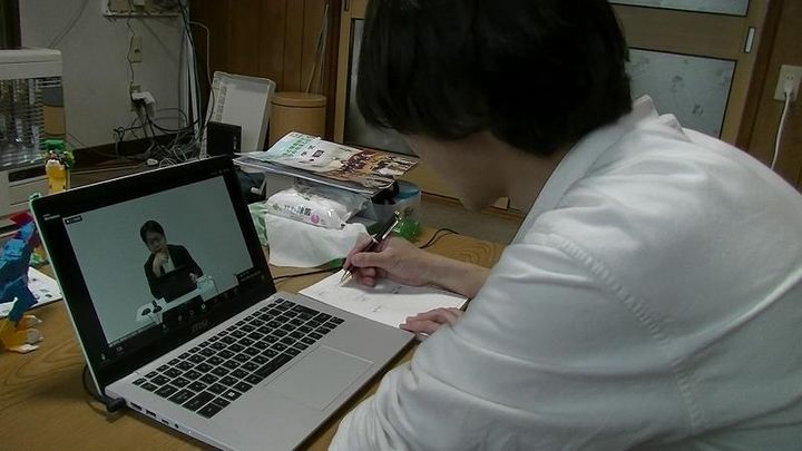 夜、藤原さんは、自宅の居間に置いたパソコンに向かっていました。