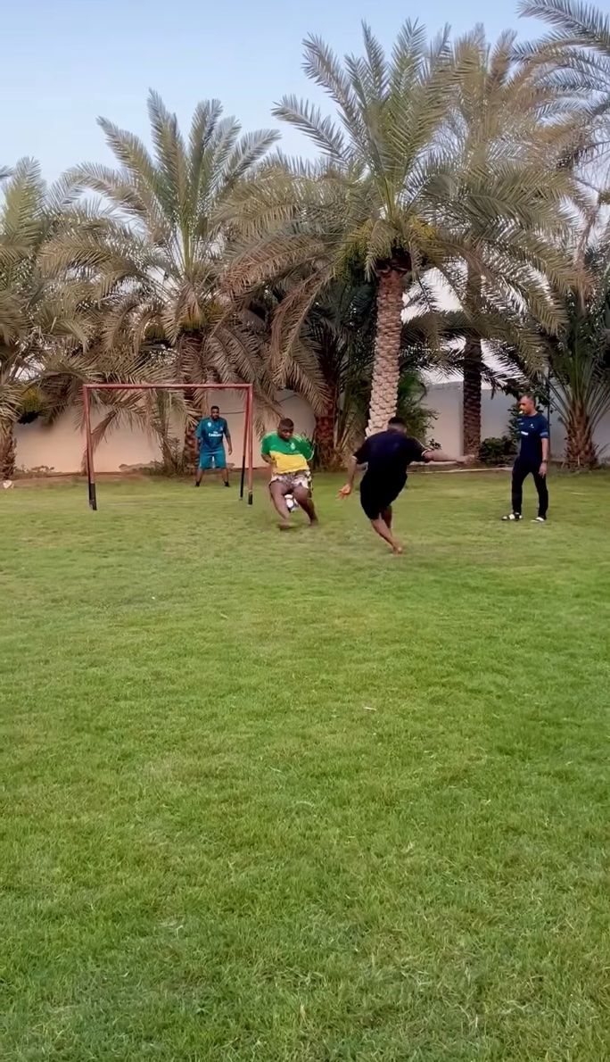 しかし、キーパーの男性は冷静に対応。 ボールの軌道を完全に読み切っており、素早く両足を閉じました。