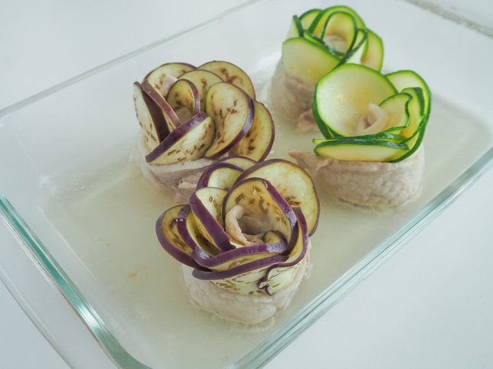 まるでバラのような見た目ですよね。この華やかな見た目に反して、レンジで作れちゃうお手軽さも魅力。いざ食べると、ごはんがすすむ安定感のある味わいにホッとするはず。