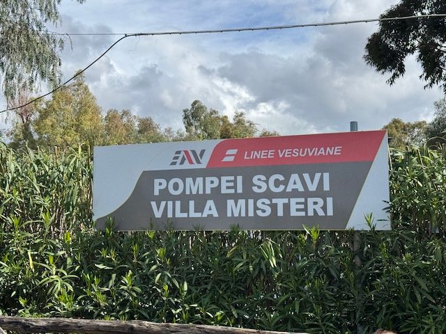 30〜40分ほどで「Pompei Scavi - Villa dei Misteri」駅に到着。改札はなく、そのままホームを出ると、数分でポンペイ遺跡の入り口に到着します。