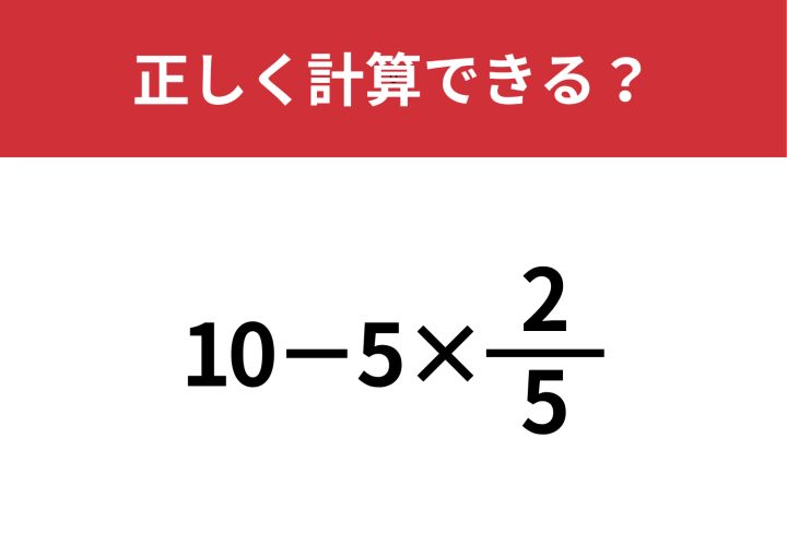 間違えずに解けますか?「10−5×2/5」正しく計算できる?