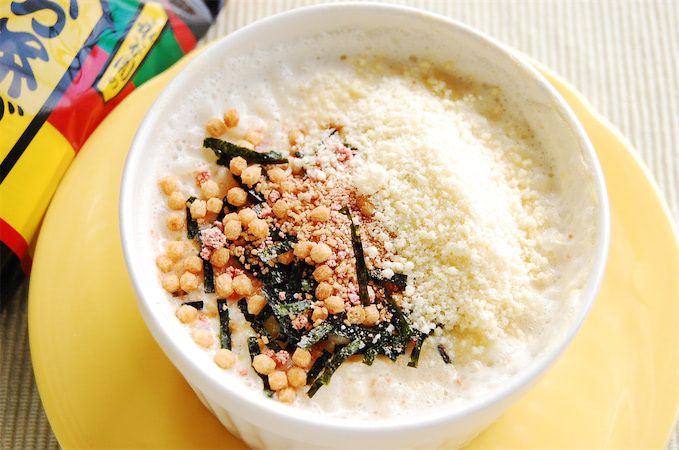 3. 【リュウジが唸った永谷園社員の虚無アレンジ】お茶漬けに豆乳!?てんこ盛りの粉チー!?リゾットに挑戦!
