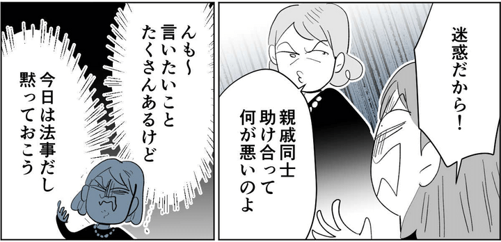母は私の話を聞かず、夫に話しかけ続けています。私が結構強めに断ると、母は逆ギレのような態度をとってきました。母に言いたいことはたくさんありましたが、親戚もいる手前、一度黙っておきます。そして「次の法事は誰?」という話になったとき、母がまた驚くほど図々しい発言をしはじめたのです。