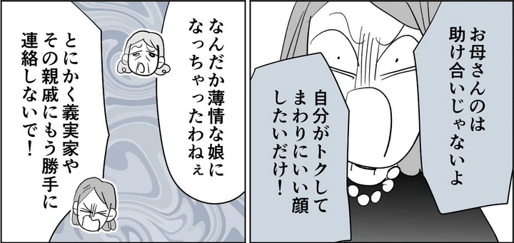 母の言動は、助け合いや頼まれごとの域を超え、ただの自己中心的な行動にすぎません。実家で母と話したときの言動を考えると、これ以上私が母を説得しようとしてもムダだと感じました。