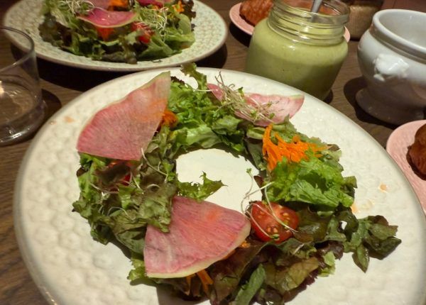 焼きたてのプレミアムブレッドに始まり、ベーコンと彩り野菜のスパイシースープ、季節のリースサラダ! 見た目も可愛く紫蘇を使ったドレッシングがとても美味しかったです。