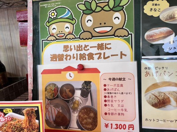 近隣の畑で採れたお野菜を使用した食飲室のメニューはどれも魅力的なのですが、私が前々から気になっていたのが週替わり給食プレート!
