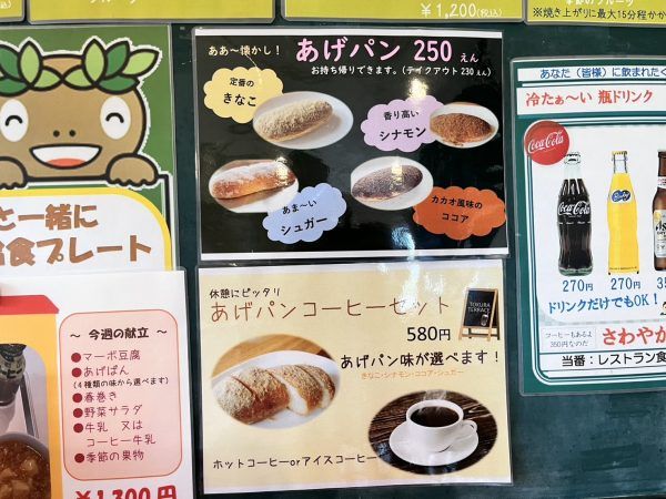 あげパンはきなこ、シナモン、シュガー、ココアの4種類から選ぶことができます。