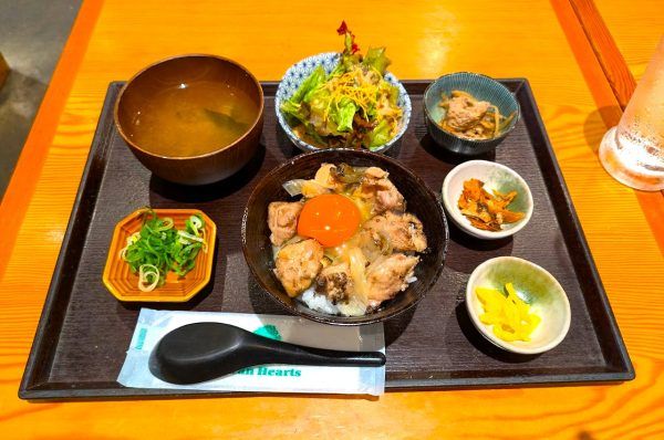 炭焼き生親子丼の「生」は、生卵のことでした。オレンジ色の卵黄が綺麗ですね。炭焼き鶏は、柔らかくておいしかったです。原始焼き・藁焼き・炉端焼きが自慢ということなので、夜の居酒屋のおでん食べ放題と焼きが楽しみですね。