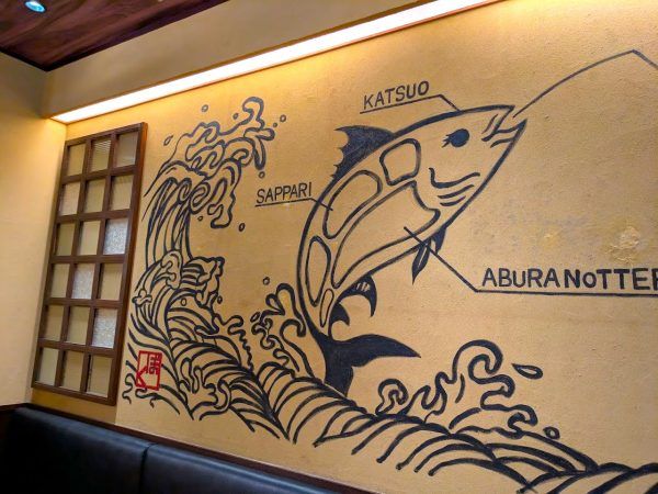 こちらはカツオのイラストですね~。日本酒も豊富で、全国各地の日本酒が約40種類あるそうです。