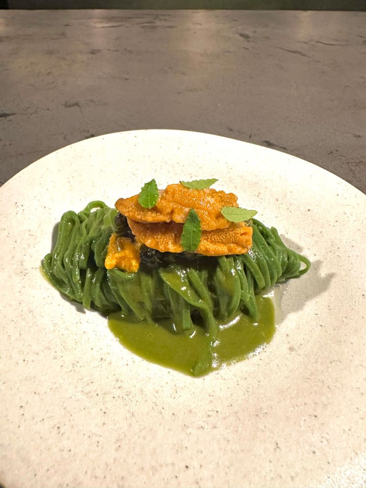濃厚なウニと香り豊かなグリーンのパスタ