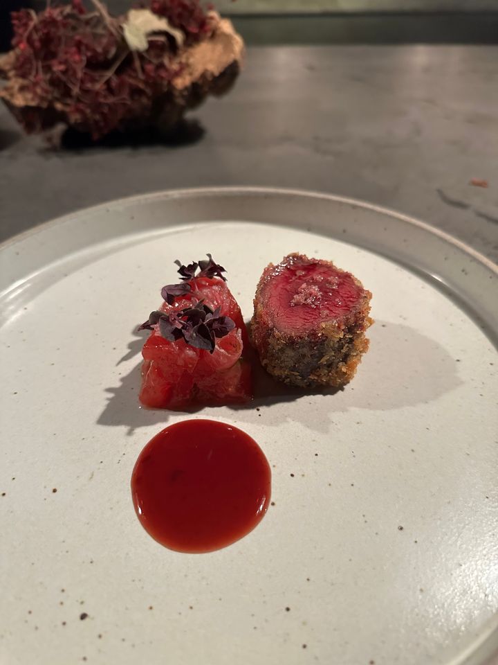 照明を抑えたモダンな内装、カウンターから始まるライブ感のある演出、そして洗練されたサービス。すべてが一体となって、料理の美しさと味わいをより引き立てています。
