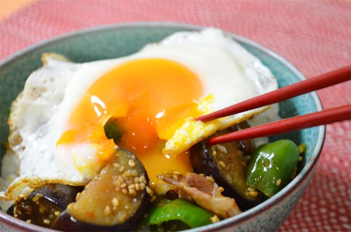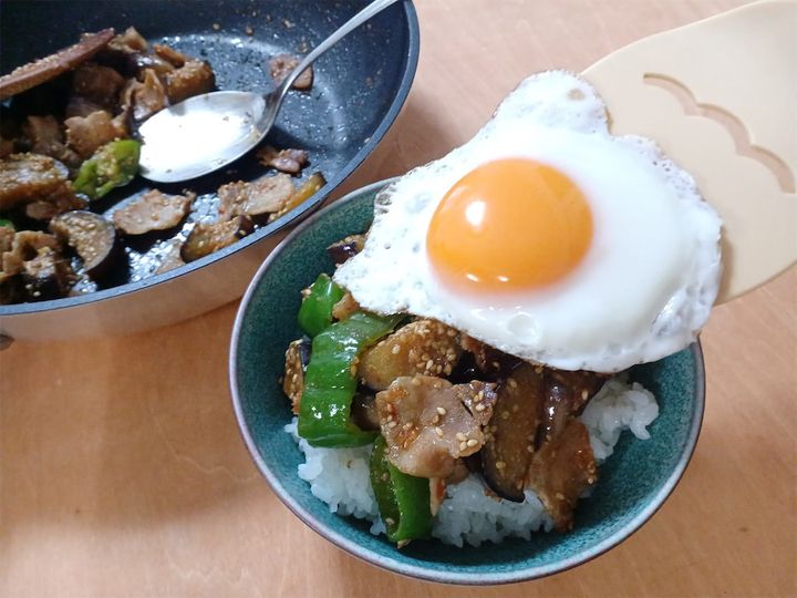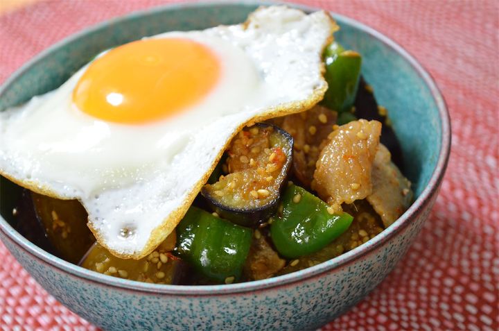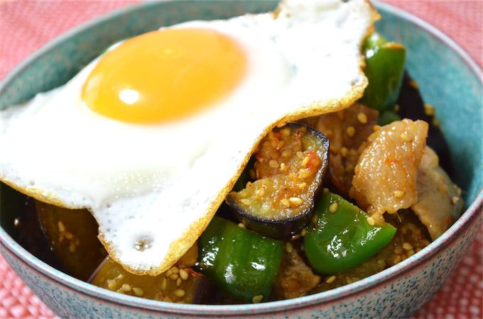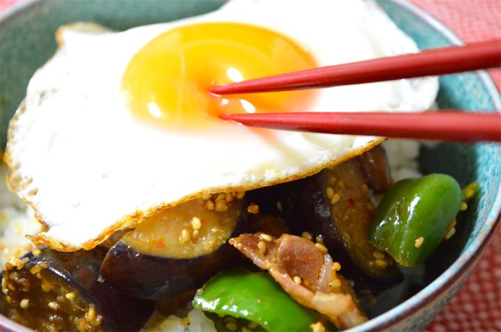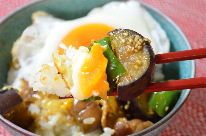 夏バテも吹っ飛ぶウマさ!「ナスとピーマンの肉みそ炒め丼」
