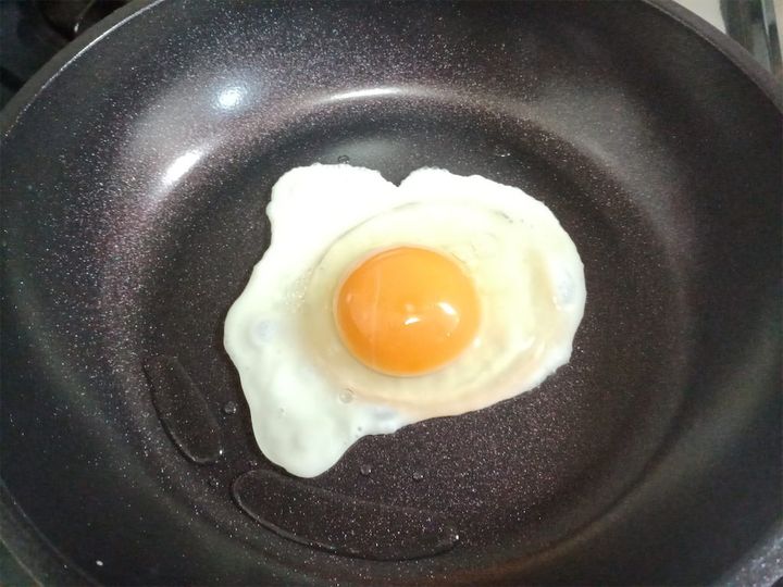 7. 丼に温かいご飯と5を盛り、目玉焼きをのせたら完成。
