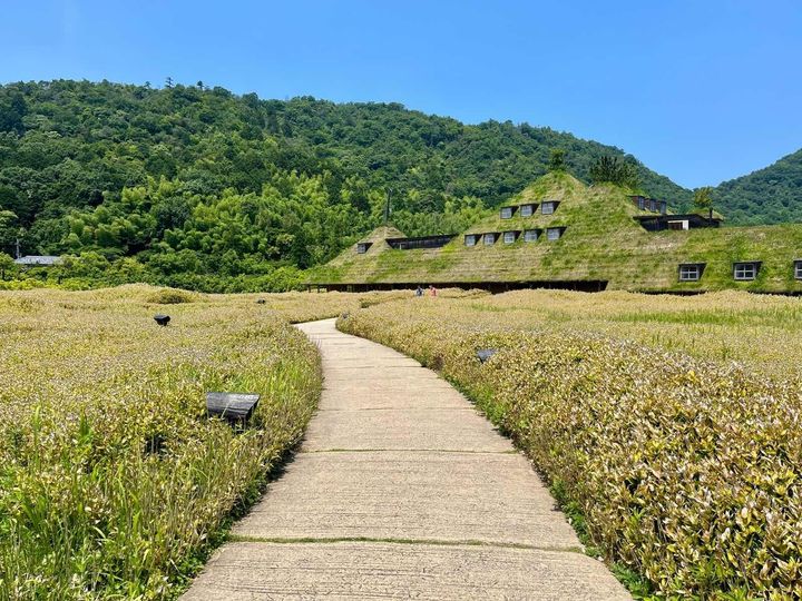 屋根一面を草で覆ったショップや田園風景のなかにたたずむカフェなど、どこを切り取っても絵になる空間が広がっています。