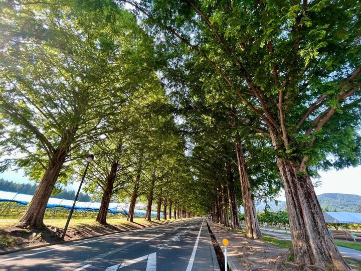 まっすぐ続く緑のトンネル。癒やしのメタセコイア並木へドライブ