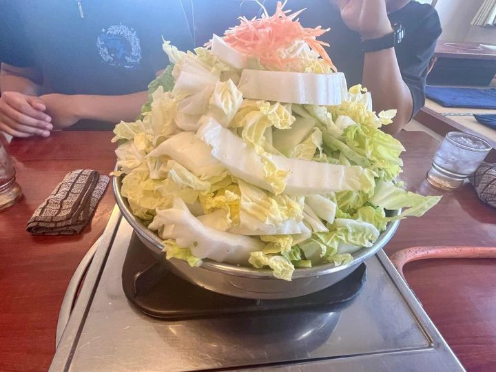 次に、びわこ食堂でランチタイム。 名物料理「とりやさいみそ鍋」は、鍋からあふれんばかりに盛られた白菜が特徴です。