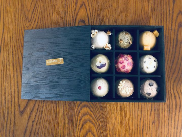 3. 事前に伝えてもサプライズ間違いなし。9種のジェラートを、見て食べて堪能