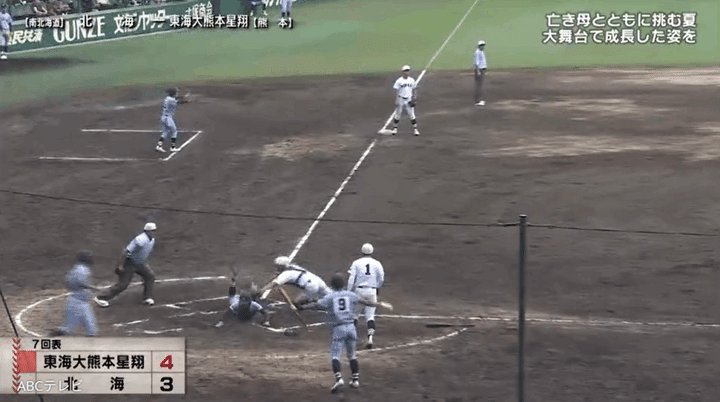 しかし7回表に、北海の守備にほころびが出る。吉井選手をはじめ、北海ナインはミスを連発し、この回で東海大熊本星翔に6点を与えてしまう。その後も北海は東海大熊本星翔との点差を縮められず、8回裏を迎えた。