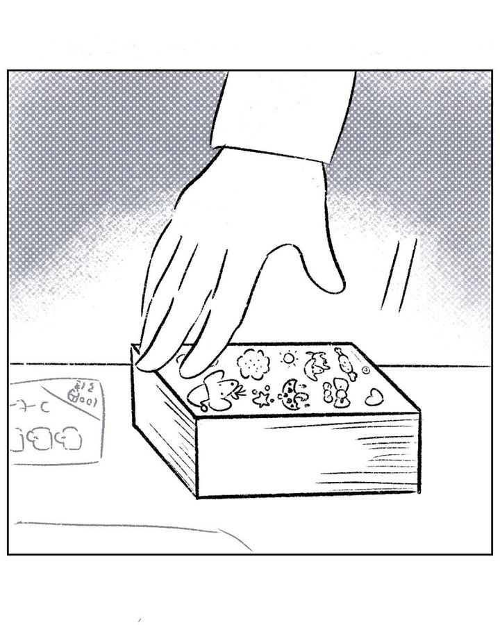 まるさんが置いたシールに手を伸ばしました。
