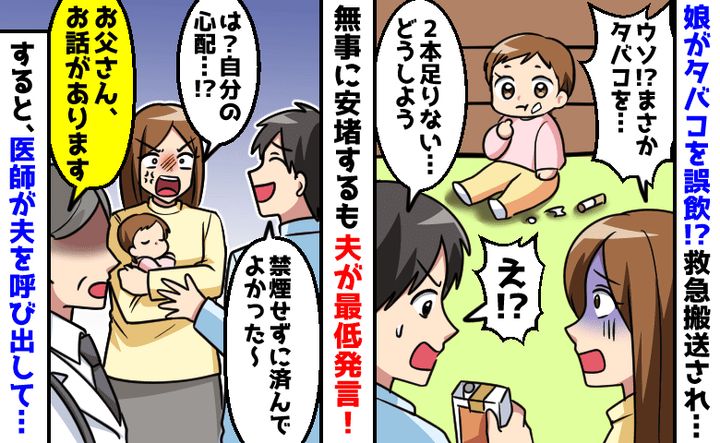 医師「お父さん、お話があります」娘がタバコ誤飲の疑いで救急搬送…反省の色がない夫が医師に呼び出されて!?