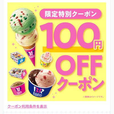 サーティワンの公式アプリ「31Club」で、8/17(日)まで使える100円OFFクーポンがもらえます。