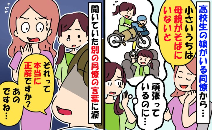 3. 保育園に娘を預けて働く私に同僚が「そばにいなきゃ」私は母親失格…?すると別の同僚がズバリとひと言