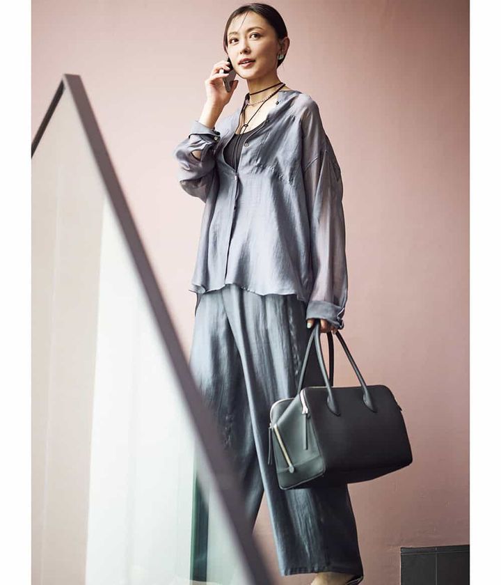 新顔シアーなセットアップなら防寒しながら程よくモード。オフィスで一目置かれる存在に。堅苦しくないけれどきちんと見えるセットアップは、今っぽく体温調節もしやすいシアー素材がイチオシ。テロンと落ち感がありリラクシーな大人っぽさも漂います。ウエストがドロスト仕様なので実は着心地も抜群なのが嬉しい。