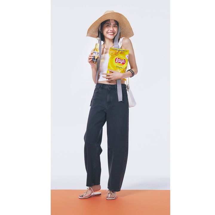 大好きな音楽とビールと今日ばかりは心置きなく食べるポテトチップスと。推しのアーティストの生声を聞きながら友達と見るサンセットというのは最高! どんなトップスも受け止めてくれるデニムは夏のイベントシーンでも大活躍。今年らしいストローハットと合わせれば、日焼け対策はもちろん、SNS映えにも自信が出るはず。シャーリングキャミソール¥1,290〈一部店舗のみ販売〉(GU)ブラックデニムパンツ¥2,990(GU)バッグ¥64,900 〈マエストソ〉 サンダル¥42,900〈イル サンダ オブ カプリ〉(ともにアマン) 帽子¥77,000(ボルサリーノ/中央帽子)イヤーカフ 〈2個セット〉¥9,900ネックレス¥21,600バングル¥7,700(すべてアビステ)