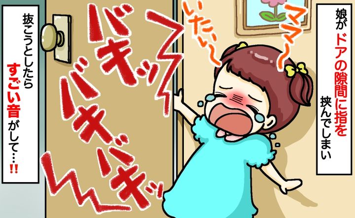 ドアの隙間に挟まった娘の指「バキッバキバキッ!」焦って抜いた途端、すごい音が…!診断結果に驚愕