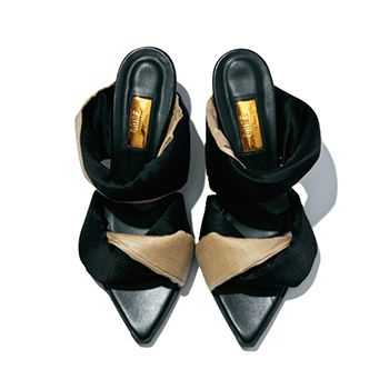 黒×ベージュリボンツイストミュール/ル タロン グリーズ(ル タロン グリーズ ルミネ新宿店) 歩くたびにアッパーが繊細な光を放つ、夏の夜にもぴったりなミュール。ツイストリボンが足元に動きをプラスして、夕暮れ時のお出かけを特別なひとときに格上げ。