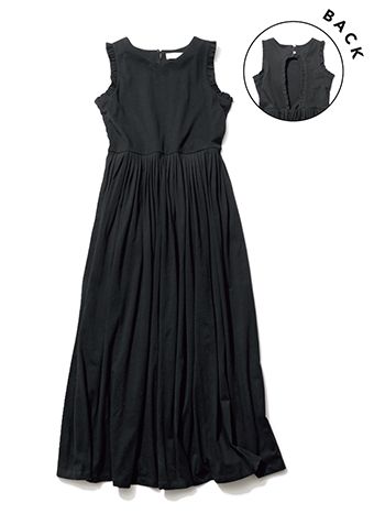 ノースリーブワンピース/デミリー ハーツ ロンハーマン(ロンハーマン) しなやかなカットソー素材で仕立てた、ノースリーブ。肩から背中にかけてフリルを贅沢にあしらい、動くたびに揺れる軽やかさと、どこかセンシュアルな雰囲気をプラス。大胆に開いた背中も、フリルのおかげでいやらしさはなく、むしろチャーミングな肌見せに仕上がる。