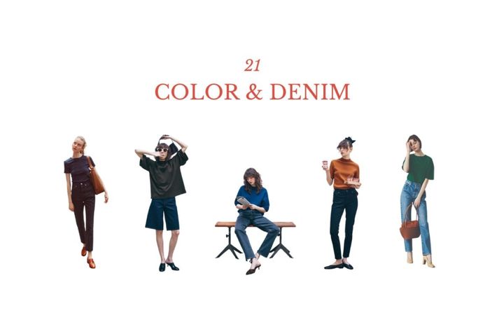 明度を落としてきちんと感を出し、あせた色合いで抜けを保つ。デニム基準にトーンをそろえると、おのずと仕上がりの方向性が定まるから。カジュアルでもコンサバでもない適度なあんばいを保てる、配色と着方の関係をご提案。