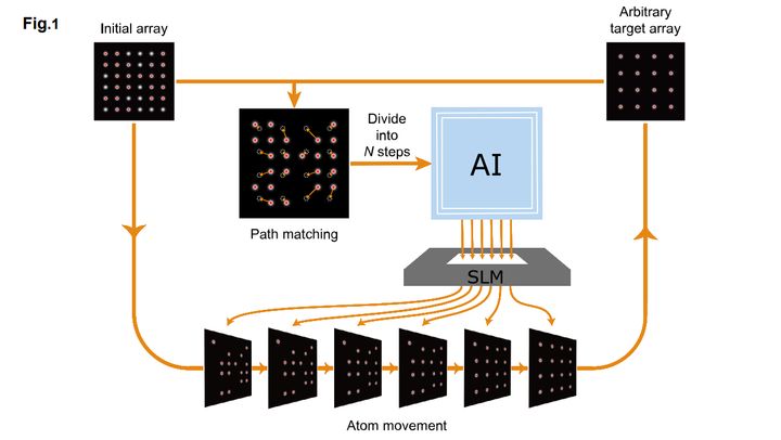 開発されたAI駆動のホログラフィック移動法を使えば、必要な数千個規模の原子を一瞬で所定の配置に揃えることができます。