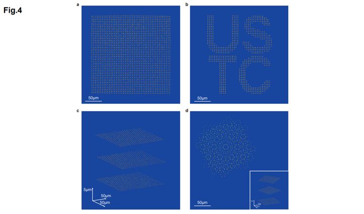 さらに、723個の原子で大学名「USTC」の文字を描いたり、自由な形やパターンも再現できることを実際に示しています。
