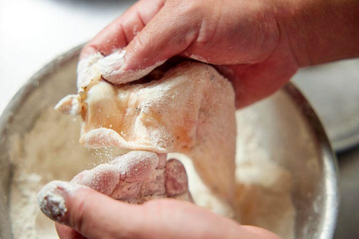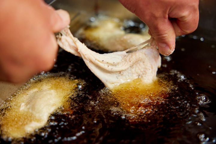 揚げたら取り出して1分放置。これを繰り返すことで、余分な水分がとび、よりカリッと仕上がります。