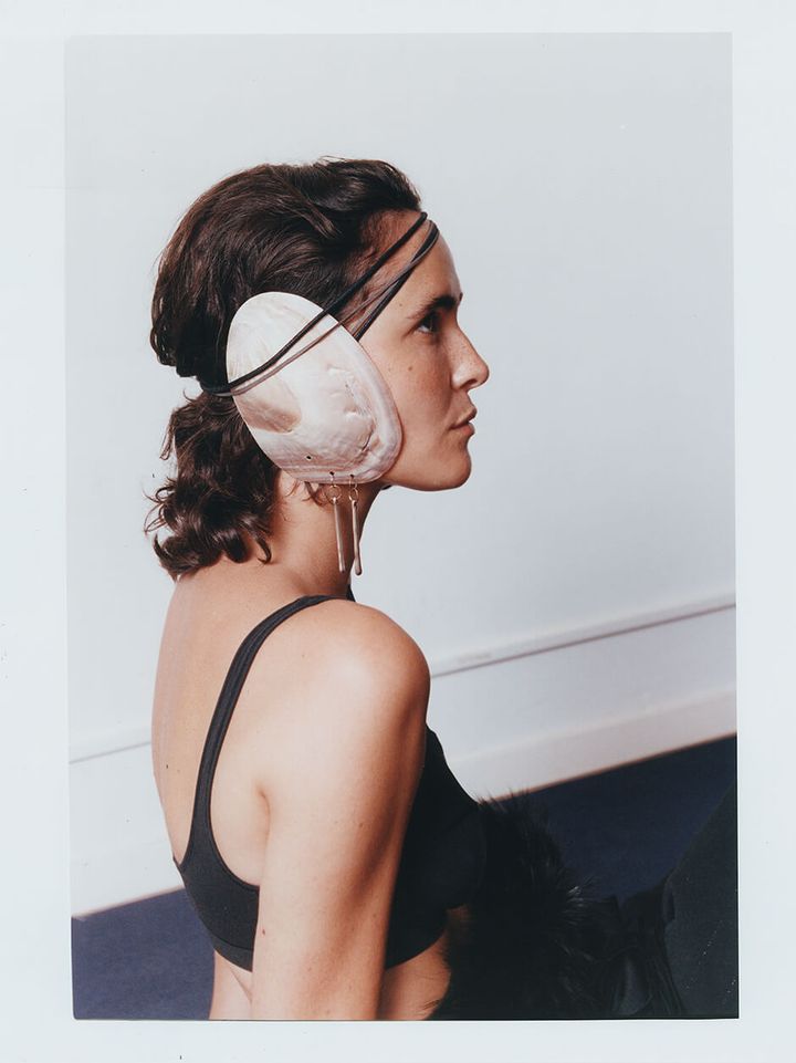 例えば、フランス北部の女性たちが着用する「コイフ・ブレトンヌ」と呼ばれる伝統的なヘッドピースを連想させる頭の上の貝殻は、身体、アイデンティティー、場所の間の象徴的な関係を体現しています。