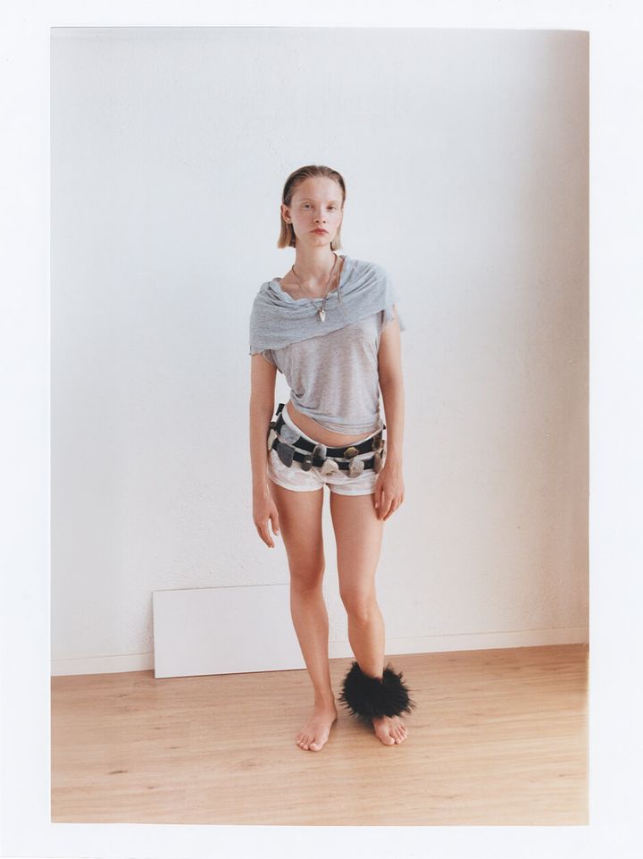 belt by Anna Eustaquio, top, shorts, necklace and anklet stylist’s own